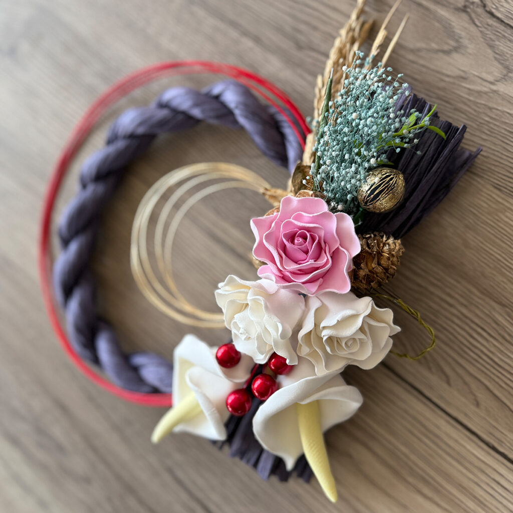 新しい年を迎えるにあたり、HAKATAアースリーフラワーでは縁起物として特別なしめ縄を限定20個で制作いたしました。奥阿蘇の石鹸粘土を使い、日本フラワーソープ協会理事長でもある YUKI KOBAYASHI が手仕事で仕上げる華やかな作品です。